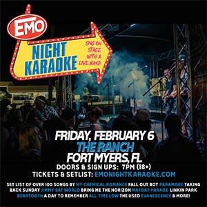 Doors & Sign-Ups start at 7:00pm 18 and Up Event Emo Night Karaoke is headlining The Ranch on 2/6 with you on lead vocals! EmoNightKaraoke features members of Just Surrender, Freshman 15, Weatherbox, Big D and the Kids Table, Jet Lag Gemini, and more! We’ll be playing your favorite songs from back in the day, (more…)